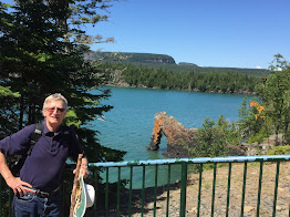 Our kayak viewing of the Pictographs was really good. The two hundred or so rock painted images are spread over about a kilometer of cliff face all at canoe height, only visible from the water. The lake was deep all the way up to the cliff face, so it was great to be able to kayak close up and get a good look at them before heading home for a well deserved supper and warm up in the RV. The next day, we repeated the kayak launch exercise to paddle across the lake to the base of the cliff for a hike which ended on the top to show off the gorgeous fall colors and spectacular views of the lake.
